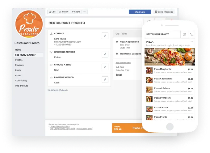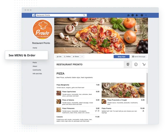Permite que en tu página de Facebook tus fans realicen pedidos directamente desde allí.